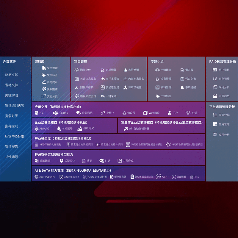 医疗器械产品上市前,,,,要熟悉严格与繁复评审标准,,,整理分析监管机构指导文件中的海量信息。。。企业急需一个智能化解决方案,,,,提升知识管理效率,,,提高评审通过率,,,,以提升其市场竞争力。。。。